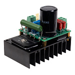 50В/5А для построения силового трансформаторного блока питания. На плате модуля установлены защитные предохранители и электролитический конденсатор фильтра емкостью 10`000мкФ.